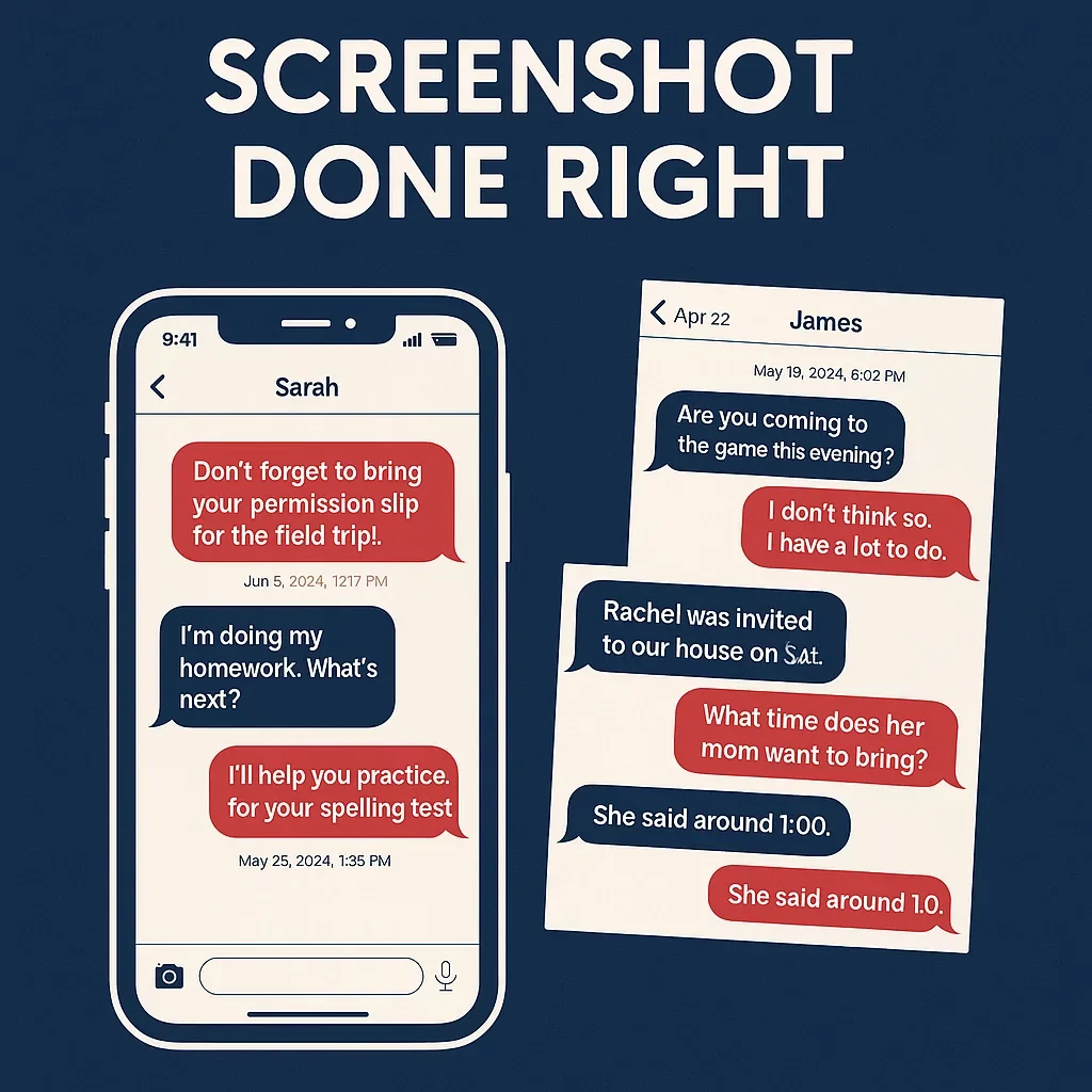 A middle-school parent documented repeated hallway incidents with date-stamped photos, exported email threads with the school, and a nurse-office log obtained via FERPA. Clear, consistent records supported safety measures and helped resolve the matter faster—and on terms that protected the student.